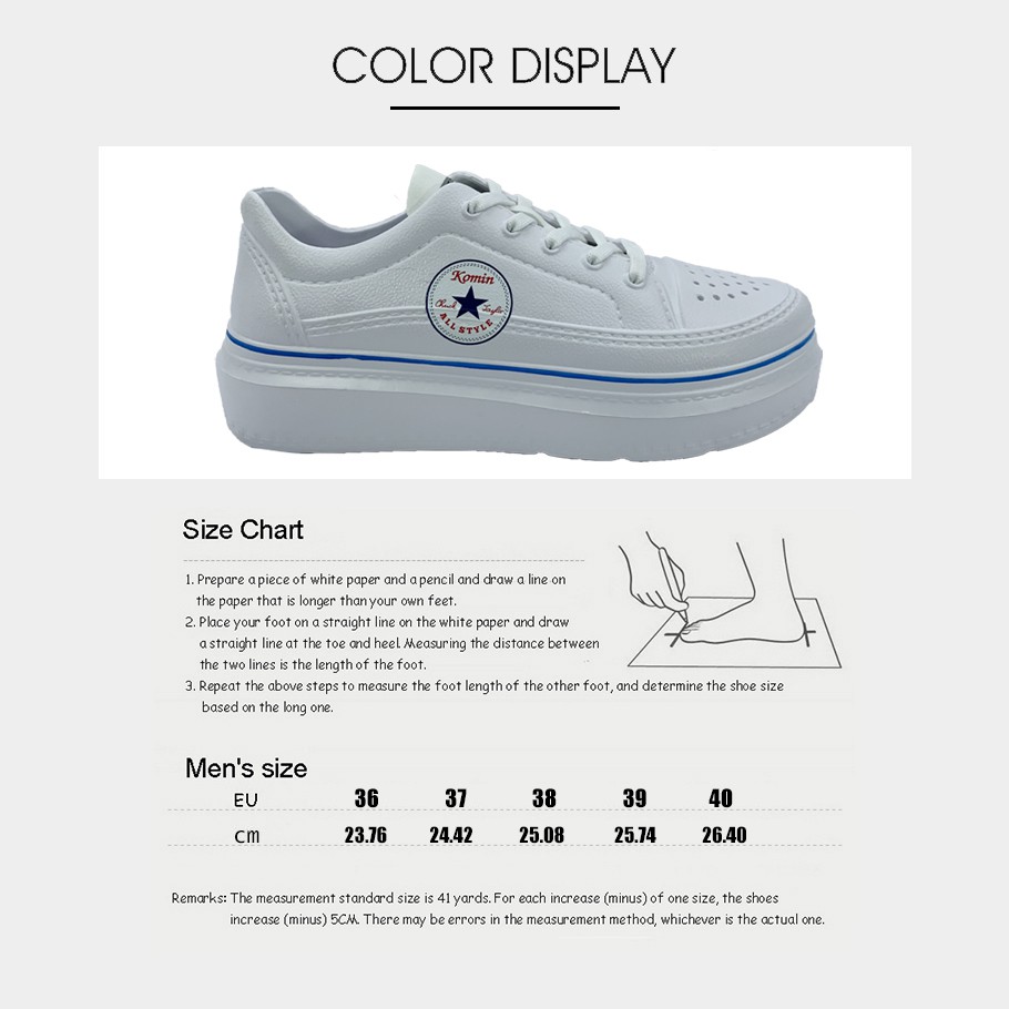 - Produk ini tidak sedang Flash Sale, tidak semua Seller suka Flash Sale, saya rasa ini bukan kekurangan, Jika Anda anggap Harga Rp. 52.000,00 itu murah untuk Komin Sepatu Wanita Sneakers korea Murah Putih sepatu Terbaru Sepatu bertali casual fashion sepatu platform ya ambil saja